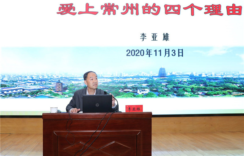仪式结束后,李亚雄作题为《常州是一座“你来了就会爱上”的城市》讲座。(通讯员/卢彦名 审核/侯新兵 编辑/张茹)