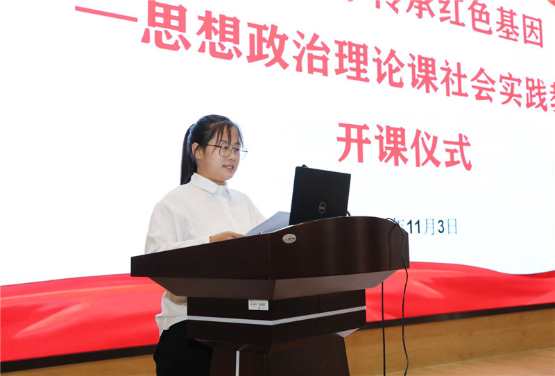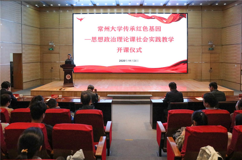 11月3日,“传承红色基因”思想政治理论课实践课程开课仪式在文彰楼报告厅举行。校党委副书记、 副校长戴国洪,常州市社科联党组书记、主席朱明辉,中共常州市委党史工办主任李亚雄,学校教务处、马克思主义学院、近现代史与红色文化研究院相关负责人,马克思主义学院师生代表200余人参加活动。校党委常委、宣传部部长杨琳主持开课仪式。