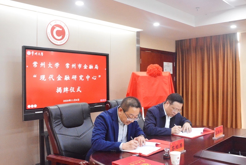 张宏如和管华分别致辞,双方从常州大学的发展历程和前景、常州市的经济形势和特点等方面,论证了合作的可行性和重要性。管华和经济学院负责人签订共建协议,张宏如和管华共同为现代金融研究中心揭牌。(通讯员/戎昊 审核/姜鸿 编辑/张茹)