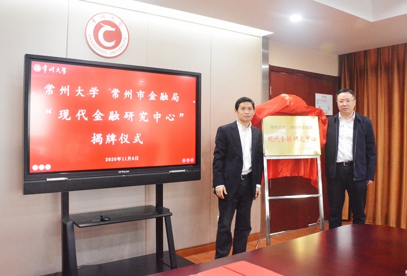 11月6日,现代金融研究中心揭牌仪式在我校举行,副校长张宏如,常州市地方金融监督管理局局长管华、副局长李德森,经济学院负责人参加活动。