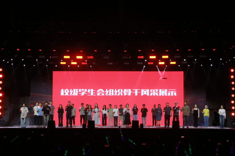 由环境科学与工程学院、美术与设计学院、安全科学与工程学院、药学院共同演绎的环保服饰走秀《风舞青衿》,模特们身着用环保材料制作的创意服饰惊艳全场,用行动证明了环保与时尚可以经纬交织。大学生艺术团带来的双人舞《雨后》和街舞齐舞《peak time》,动静相宜,既展现舞蹈艺术的细腻表达,又突出青年学子的蓬勃朝气。校园十佳歌手在舞台惊艳开嗓,演唱歌曲《最炫民族风》融合了民族元素与现代流行风格,具有极强的舞台感染力。最后,校院两级团工作负责人和学生组织负责人合唱《我爱你,中国》,在悠扬的歌声和对祖国母亲的美好祝愿中,晚会圆满落下帷幕。