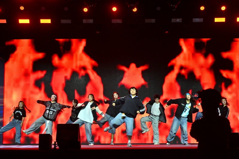 伴随着音乐《Borderless Beats》的欢快旋律,海外留学生为我们带来了由世界鼓乐与电子音乐创新融合的视听盛宴,诠释了人类命运共同体的核心。教工舞蹈队的舞蹈《舞韵龙城》,用舞蹈诠释“经师”与“人师”的统一,舞毕全场响起热烈掌声。大学生艺术团的说唱《洗牌》歌词充满节奏感,台上表演者们与观众热情互动,将会场气氛推向高潮。街舞联盟倾心演出的青春热舞《等你的回答》演绎了“青春等待与回应”的主题。