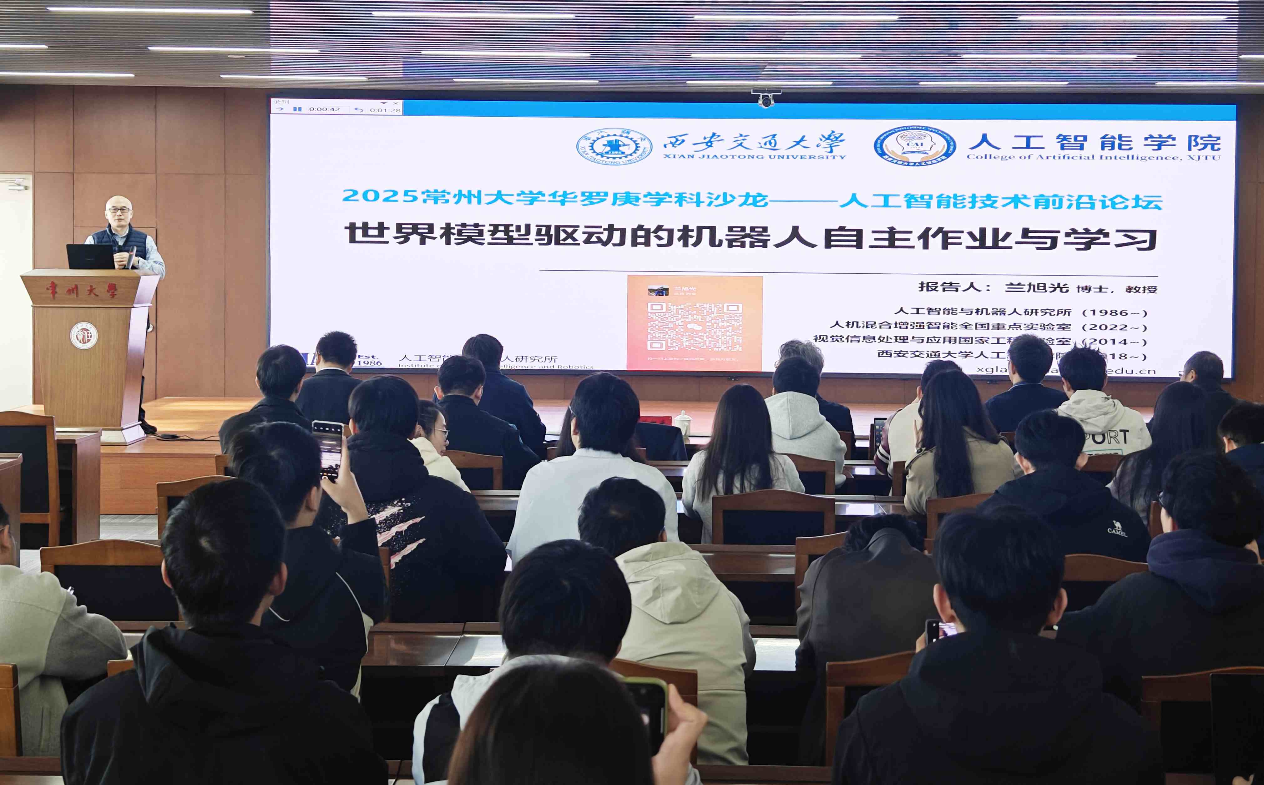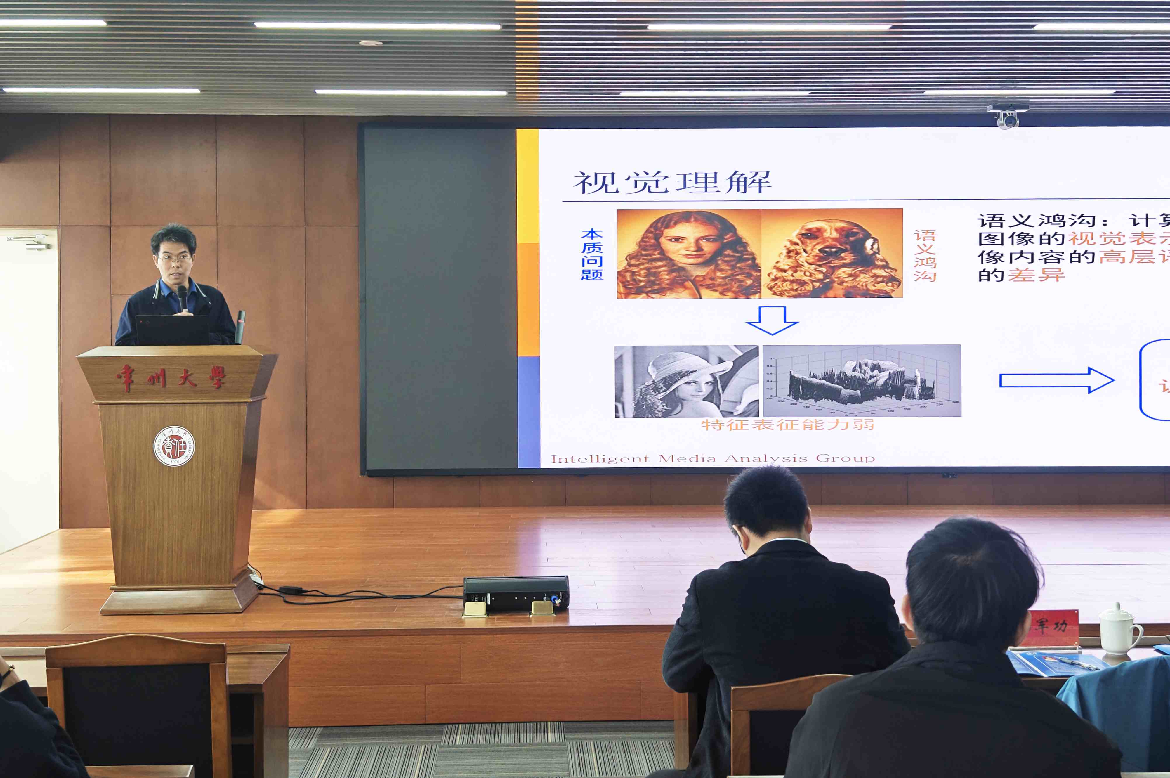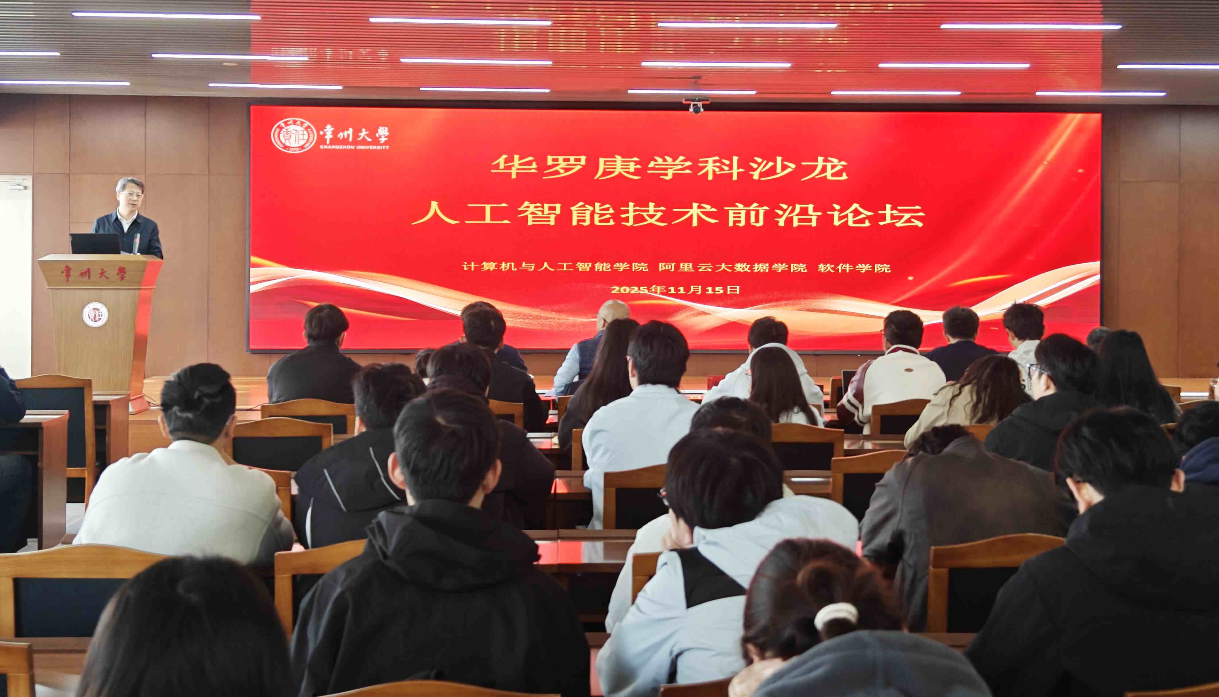 近日,华罗庚学科沙龙——人工智能技术前沿论坛在常州大学西太湖校区白云楼4楼报告厅举行,南京邮电大学副校长、国家杰青刘青山,西安交通大学人工智能学院党委书记、国家杰青兰旭光,南京理工大学计算机科学与工程学院 人工智能学院 软件学院院长、国家杰青李泽超,清华大学长聘教授、海外高层次人才韩军功受邀出席。我校党委书记徐守坤、计算机与人工智能学院相关负责人,以及学院部分青年博士和研究生共同参会。
