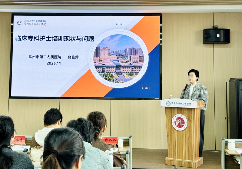 在专科护士培养专题中,常州市第二人民医院护理部主任裔雅萍深入分析了国内专科护士培养的现状与困境,并提出以核心能力为本的破局思路。常州卫生高等职业技术学校护理系主任缪金萍从教育者视角,分享了通过产教融合、特色班与现代学徒制等模式,培养贴近临床需求的护理人才的创新实践。医学与健康工程学院青年博士王濯与靳颖分别就“数字健康时代脑卒中的全生命周期精准化管理”和“质性研究与Nvivo软件应用”作了精彩报告,展现了学院教师在慢病管理前沿研究方法领域的探索与积累。与会人员围绕人才培养方案优化与临床问题驱动的科研选题展开热烈讨论,进一步凝聚了院校合作共识,明确了未来协作方向。