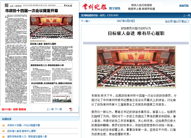 | 常州晚报:政协委员分组讨论时认为目标催人奋进 唯有尽心履职 |