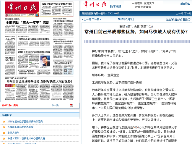 | 唐文竹 朱雅萍 常州日报 第A01版:要闻 2017.3.5 发布时间: 2017-03-06 |