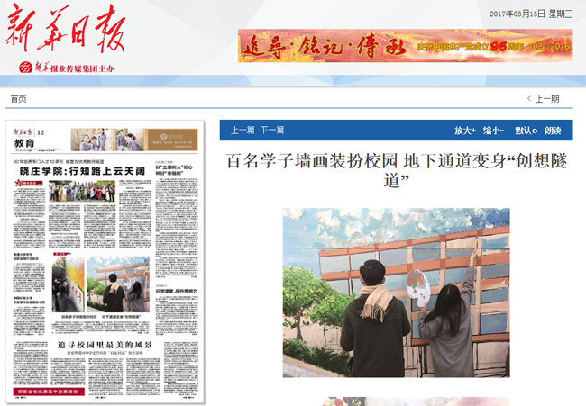 | 新华日报:百名学子墙画装扮校园 地下通道变身“创想隧道” |