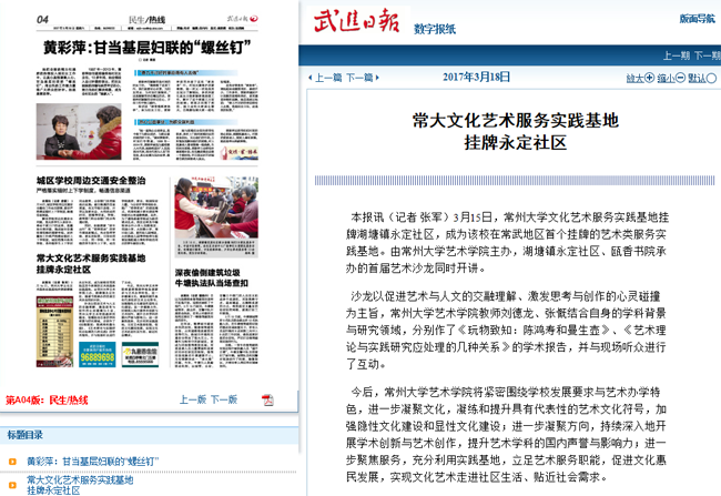 | 武进日报:常大文化艺术服务实践基地挂牌永定社区 |