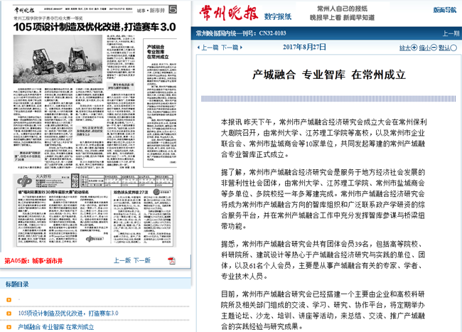 | 常州晚报:产城融合 专业智库 在常州成立 |
