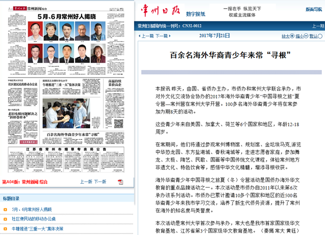 | 常州日报:百余名海外华裔青少年来常“寻根” |