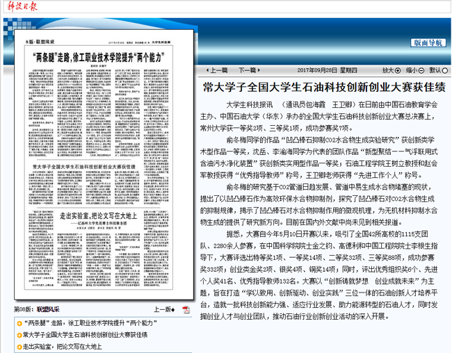 | 大学生科技报:常大学子全国大学生石油科技创新创业大赛获佳绩 |