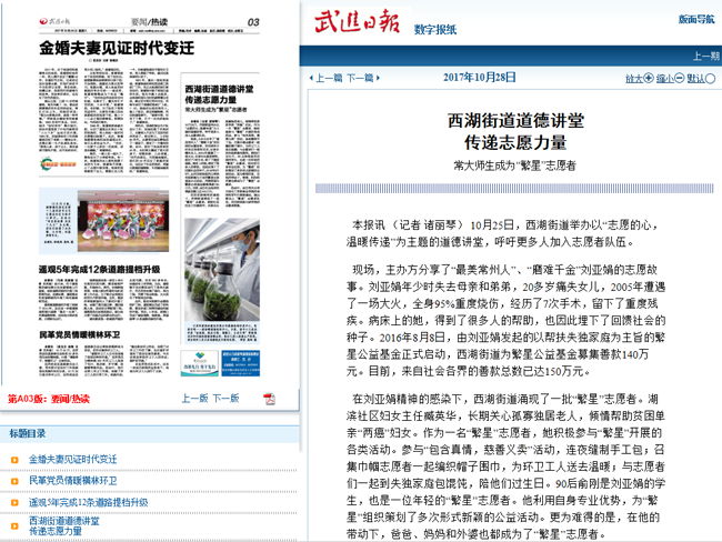 | 武进日报:西湖街道道德讲堂传递志愿力量 常大师生成为“繁星”志愿者 |