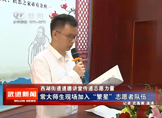 | 武进电视台:西湖街道道德讲堂呼吁传递志愿力量 常大师生现场加入“繁星”志愿者队伍 |