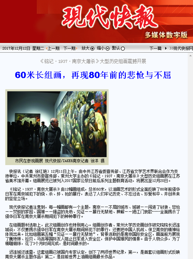 | 现代快报:《铭记·1937·南京大屠杀》大型历史组画震撼开展 |