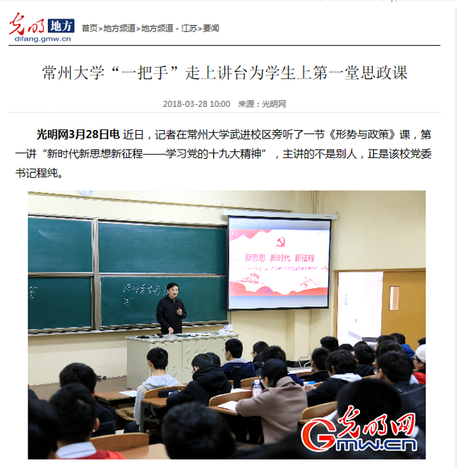 | 光明网:常州大学“一把手”走上讲台为学生上第一堂思政课 |
