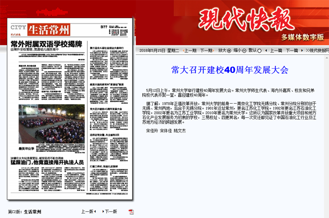 | 现代快报:常大召开建校40周年发展大会 |