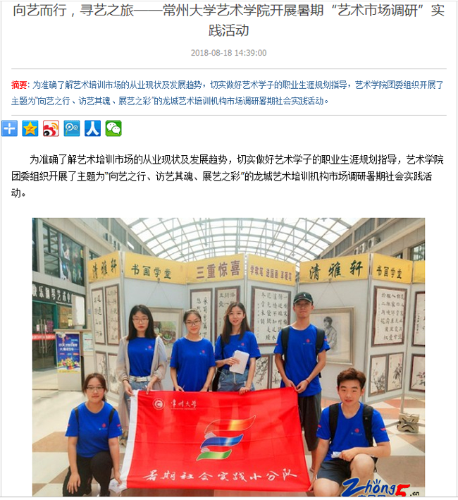 | 中吴网:向艺而行,寻艺之旅——常州大学艺术学院开展暑期“艺术市场调研”实践活动 |