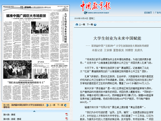 “将来我们的平台要更加关注老年慢性病患者,为他们提供更多服务。”北京大学“众维健康互联网基本公共卫生”项目负责人孔寅飞说。 今天下午,在“青年红色筑梦之旅”赛道展区,记者遇到了从此次“红旅”赛道脱颖而出的“众维健康互联网基本公共卫生”团队。 孔寅飞所做的,是依托互联网、生命科学、大数据等技术提升基层医疗机构的公共卫生服务水平和满意度。目前,该项目已经成功在浙江和广东等地的基层医疗卫生机构得到应用,覆盖了100个乡镇的700万人口。 常州大学“贵在植染”是一项以云贵地区常见的植物蓝草等为原料,生产植物染料并提供技术服务的项目。项目负责人戴繁琢说:“同样的一亩地,种植水稻可以赚2000元,而种植蓝草可以赚1万元。随着858亩蓝草在贵州省三都县种植,将成功带动当地143户农户脱贫,平均每户增收9600元。” 福建农林大学“引凤计划”展位桌上摆放着“黄金百香果”。 “我们为乡村引进的是‘金凤、玉凤、雏凤’,也就是创新创业领军人才、乡村创业人才和在校大中专学生。我们搭建了一个工作站,以它为载体,为服务乡村的人才提供政策咨询、技术指导、专项培训等。”项目负责人裴锦泽说,“黄金百香果”就出自“引凤计划”中的一名福建长汀返乡创业青年,他通过百香果品种改良,降低了百香果的酸度,受到市场欢迎。 2012年,裴锦泽在学校成立了“三农”爱心社,并在2014年发起“引凤计划”,如今已经成功吸引“金凤”27名、“玉凤”340名、“雏凤”12700名,帮助13个单品进行了品种改良、管理改进和产销对接。 裴锦泽说,作为农林院校的学生,对于自己的努力能够得到认可感到非常激动,这也来源于学校多年来服务基层氛围的感召。 “微创手术是目前治疗腰椎间盘突出等脊柱疾病的主流,但有限的暴露视野,增加了神经损伤的风险。我们通过神经可视化技术,帮助医生更容易地开展手术。”四川大学“神经可视化脊柱微创手术导航系统”项目指导教师、四川大学华西医院骨科医生王贤帝说。 王贤帝梦想,假以时日,如果广大的基层县医院能够掌握这项手术技术,将大大便利患者就医。 温州医科大学“星海赋能”项目负责人骆美辰最初关注孤独症群体是在2012年,当时还在读大一的骆美辰与同学做了一项关于孤独症人群的课题研究,同时还在孤独症特殊学校当志愿者。 “当时家长是很抗拒我们的,后来我们跟他们熟悉了之后发现,孤独症家庭面临非常大的经济、精神压力和残酷的现实,得到的社会关注远远不够。”骆美辰说。 2016年,这一经历成为骆美辰的创业方向。他们突破了以往以儿童为中心的干预理念,聚焦孤独症患儿家长的培训,希望建立以家长为核心的孤独症教育康复的新模式。 “我觉得作为一名医学大学生要医者仁心,不仅仅是治病救人,还要去传播关怀。”骆美辰说。 |