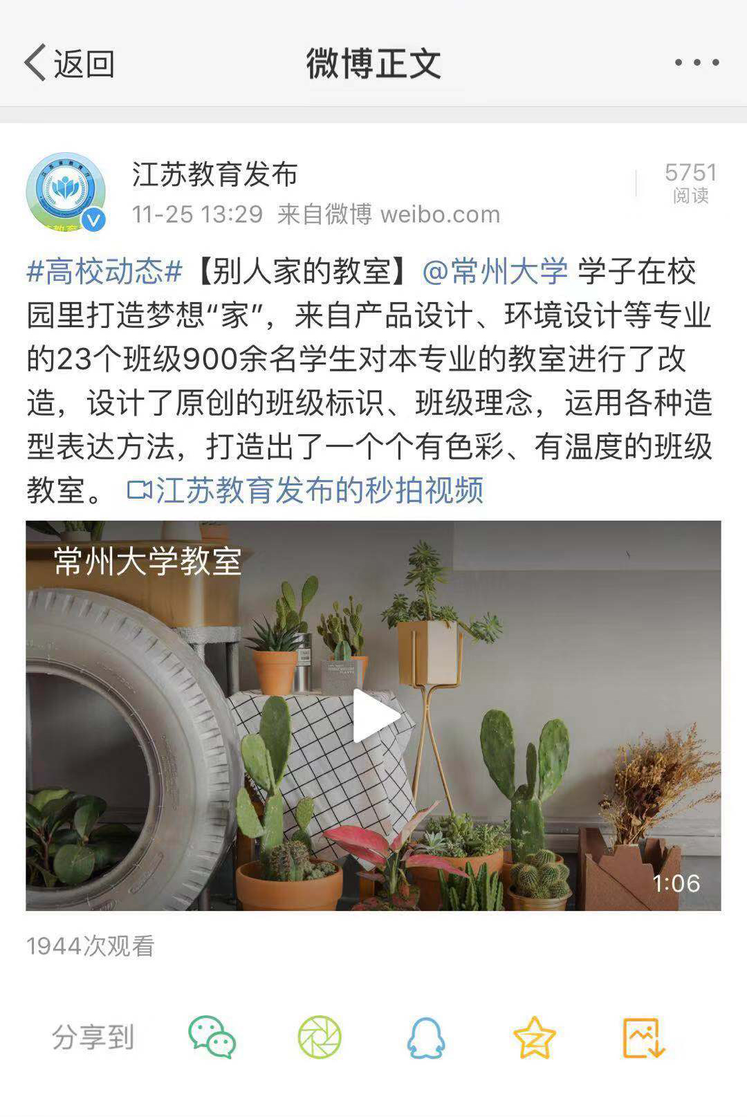 | 江苏教育发布(微博):#高校动态#【别人家的教室】@常州大学学子在校园里打造梦想“家” |