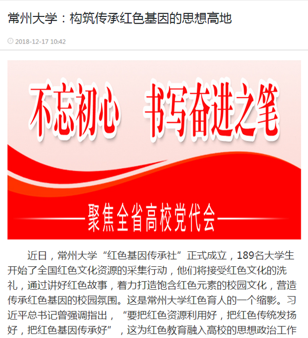 | 新华日报“不忘初心 书写奋进之笔 聚焦全省高校党代会”专栏报道我校思政工作特色成果 交汇点同步报道 |