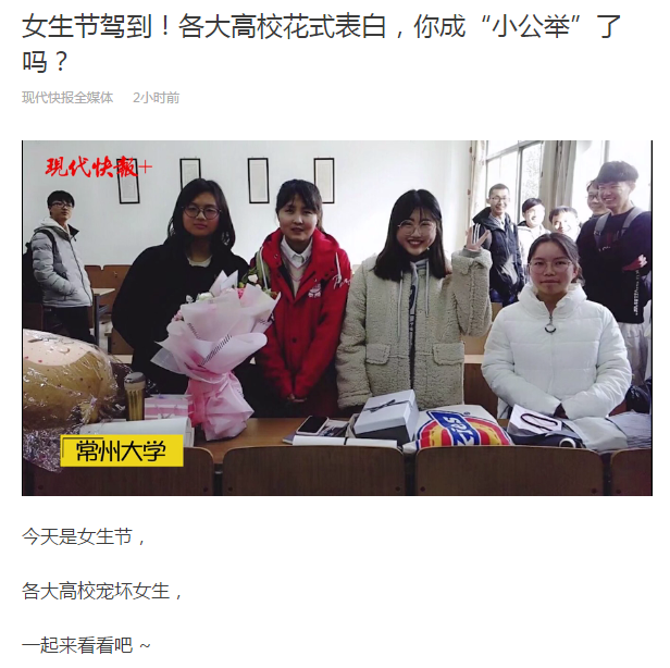 现代快报全媒体:女生节驾到!各大高校花式表白,你成“小公举”了吗?