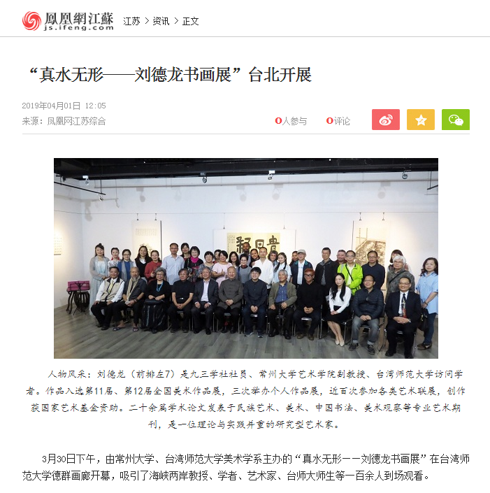 | 凤凰网:“真水无形——刘德龙书画展”台北开展 |