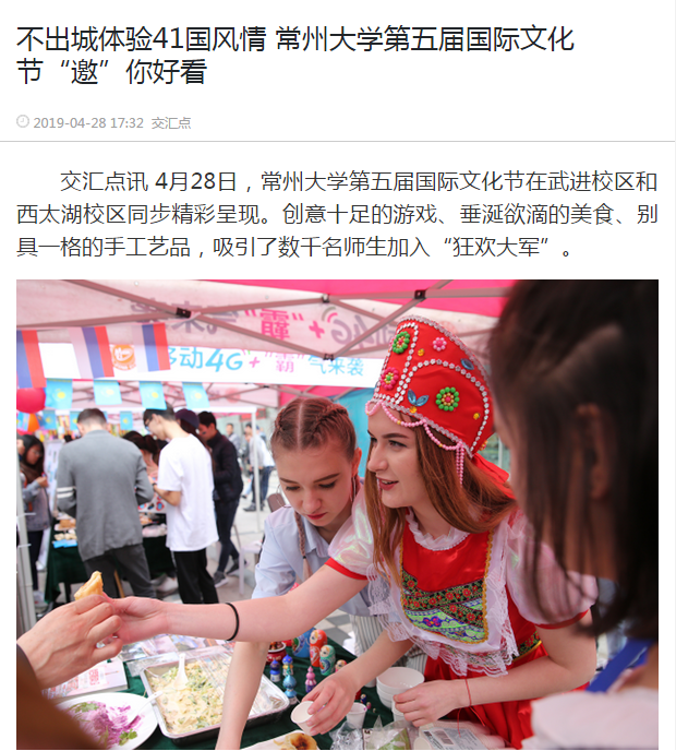 | 交汇点:不出城体验41国风情 常州大学第五届国际文化节“邀”你好看 |