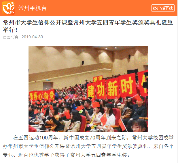 | 常州手机台:常州市大学生信仰公开课暨常州大学五四青年学生奖颁奖典礼隆重举行 |