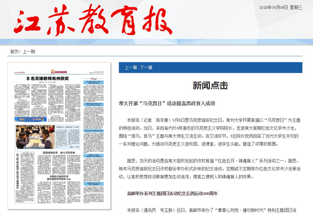 | 江苏教育报:常大开展“马克思日”活动提高思政育人成效 |