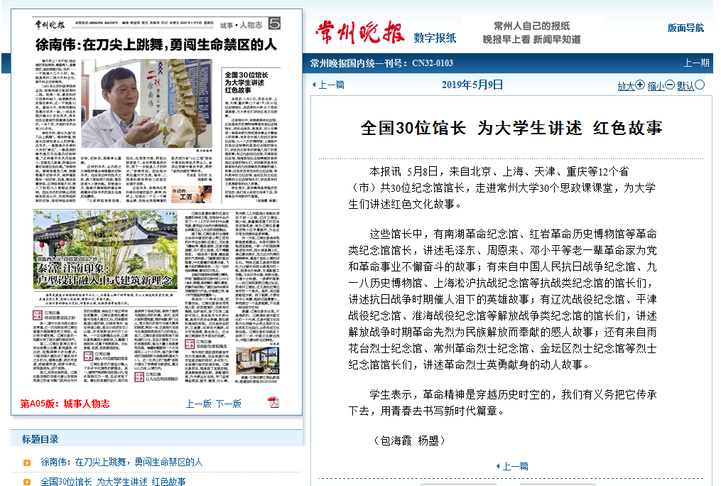 | 常州晚报:全国30位馆长 为大学生讲述红色故事 |