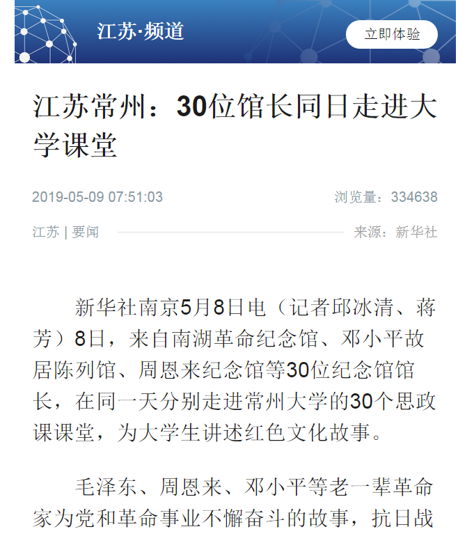 | 新华社:江苏常州 30位馆长同日走进大学课堂 |