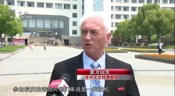 伴随着高亢昂扬的校歌,常州大学在今天迎来了41周年校庆日。《我和我的祖国》、《我爱你中国》等红色歌曲引起了师生的共鸣,大家挥舞着国旗,献礼祖国70周年,献礼母校41岁生日,把活动推向了高潮。 【同期声】常州大学学生 薛雨彤:(这样的活动让我很震撼。) 【同期声】常州大学学生 谢奔:(感觉常大老师和同学在一起气氛很不错,希望常大越来越好,希望祖国越来越好。) 来自俄罗斯的特聘教授亚力山大也参与了整场活动,他告诉记者,这是一次令人振奋的活动,很荣幸参与其中。 【同期声】常州大学特聘教授 亚力山大:(翻译:参加校级的活动对他们来说是一种放松,整个常州大学也很需要音乐,所以这么多人来参加非常的高兴。) 常州大学建校至今,从最初的2个本科专业,已发展成为涵盖工学、理学、管理学等十大学科门类,本硕博培养层次齐全的高等院校。去年,常州大学作为中国内地146所高校之一,入围了《美国新闻和世界报导》发布的世界大学排行榜;发明专利授权量连续四年位列全国高校前50强;获批为博士学位授予单位。