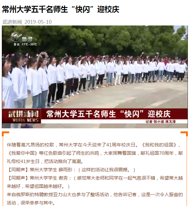 | 武进电视台:常州大学五千名师生“快闪”迎校庆 |