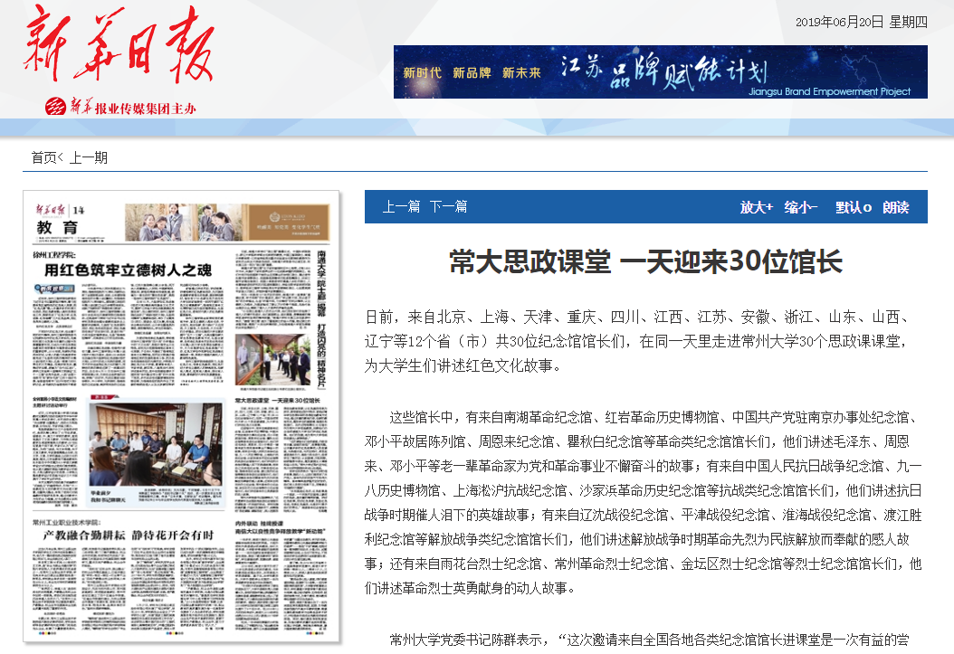 | 新华日报:常大思政课堂 一天迎来30位馆长 |