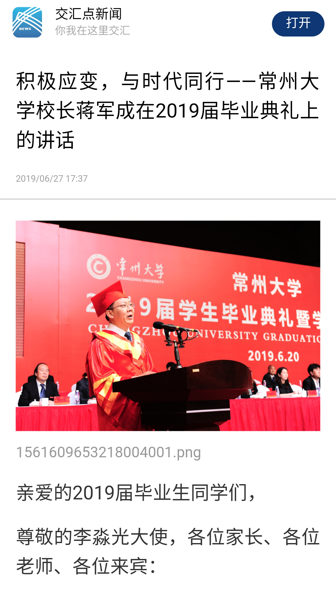 | 交汇点全文登载蒋军成校长在2019届学生毕业典礼上的讲话 |