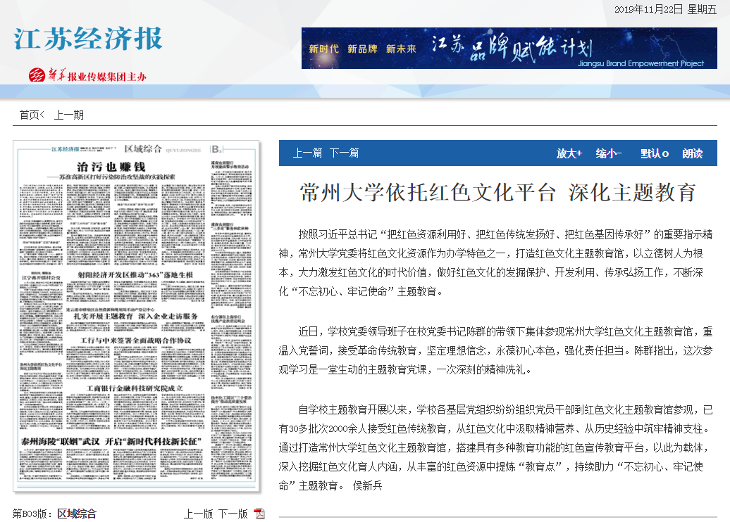 | 江苏经济报:常州大学依托红色文化平台 深化主题教育 |