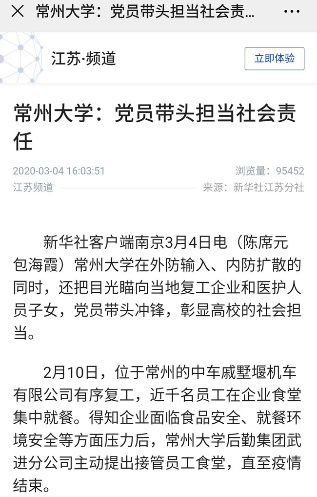 新华社客户端南京3月4日电(陈席元 包海霞)常州大学在外防输入、内防扩散的同时,还把目光瞄向当地复工企业和医护人员子女,党员带头冲锋,彰显高校的社会担当。 2月10日,位于常州的中车戚墅堰机车有限公司有序复工,近千名员工在企业食堂集中就餐。得知企业面临食品安全、就餐环境安全等方面压力后,常州大学后勤集团武进分公司主动提出接管员工食堂,直至疫情结束。 “寒假期间,我们学校食堂一直在营业,所以我们在员工动态信息跟踪、远程教育等方面积累了经验,可以带到企业食堂里面去。”公司党支部书记曹祥生说。 这些天来,曹祥生往返于学校和企业,每天“上两个班”,中车戚墅堰机车有限公司食堂的安全管控和菜品口味,和高校食堂没有两样。“我们抓人员管理,严格采购流程,规范加工程序,明确消杀标准。本着保障有力、安全可靠、稳定质价、有序分餐的原则,合理调整饮食结构。”曹祥生说。 中车戚墅堰机车有限公司后勤部主任朱广树表示,常州大学后勤集团不计成本,适时调整供餐模式,共享高校食堂管理经验,引导就餐员工分开就坐,为企业员工安全返岗解后顾之忧。 近日,常州市成立了“疫情防控青年突击队”,对抗疫一线的医护人员子女实施关爱计划,常州大学马克思主义学院党员教师曾晨报了名,并担任第三小组组长,为“逆行者”的孩子提供心理疏导、学业辅导等一对一帮扶服务。 周锦昀是曾晨的帮扶对象之一。据了解,周锦昀的母亲是常州三院护士,这些天来一直在隔离病房工作,无法回家,这让平时一直由妈妈照顾学习生活的周锦昀感到不适应。为此,曾晨每天和周锦昀视频聊天,了解他的情况,在线辅导功课。 曾晨的丈夫是一名军人,春节期间因执行任务一直没有回家,家中还有一个8个月大的宝宝需要照顾。“帮助这些学生们,尽我们一点努力,让在前线的医护人员放心。”曾晨说。 在曾晨的影响下,常州大学多名青年教师加入“疫情防控青年突击队”,他们还为疫情期间生活困难的160余名事实孤儿募集和发放“爱心包裹”,开展线上心理健康呵护活动。 |