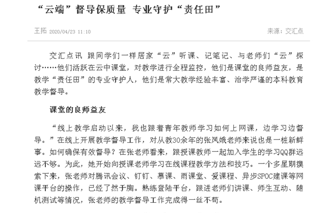 | 交汇点:“云端”督导保质量 专业守护“责任田” |