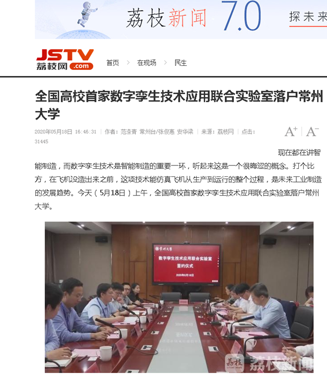 | 荔枝新闻:全国高校首家数字孪生技术应用联合实验室落户常州大学 |