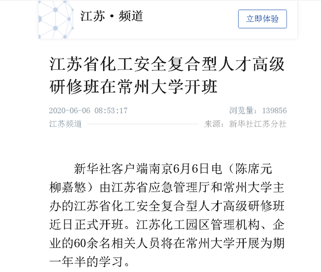 | 新华社:江苏省化工安全复合型人才高级研修班在常州大学开班 |