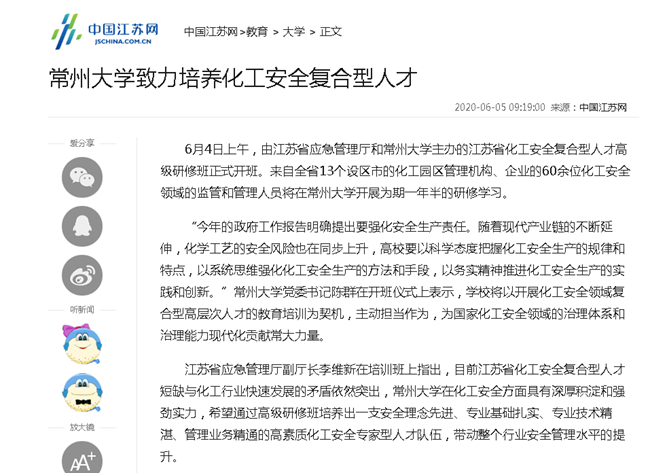 | 中国江苏网:常州大学致力培养化工安全复合型人 |