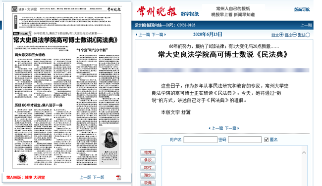 | 常州晚报:常大史良法学院高可博士数说《民法典》 |
