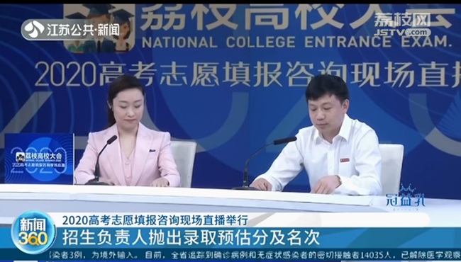 江苏卫视:2020高考志愿填报咨询现场直播举行 招生负责人抛出录取预估分及名次