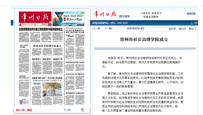 | 常州日报:常州市社会治理学院成立 |