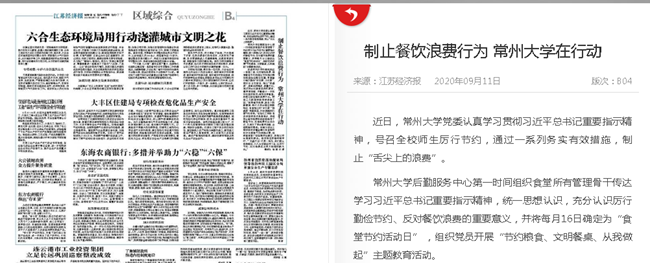 | 江苏经济报:制止餐饮浪费行为 常州大学在行动 |