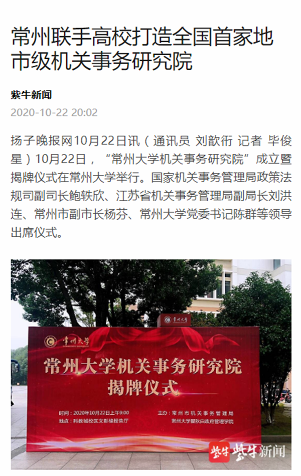 | 紫牛新闻 : 常州联手高校打造全国首家地市级机关事务研究院 |