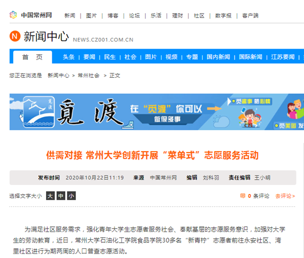 | 中国常州网:供需对接 常州大学创新开展“菜单式”志愿服务活动 |