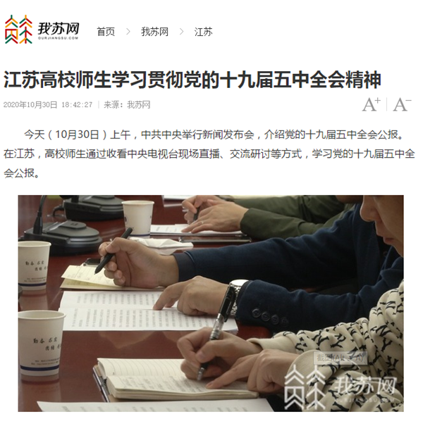 | 我苏网:江苏高校师生学习贯彻党的十九届五中全会精神 |