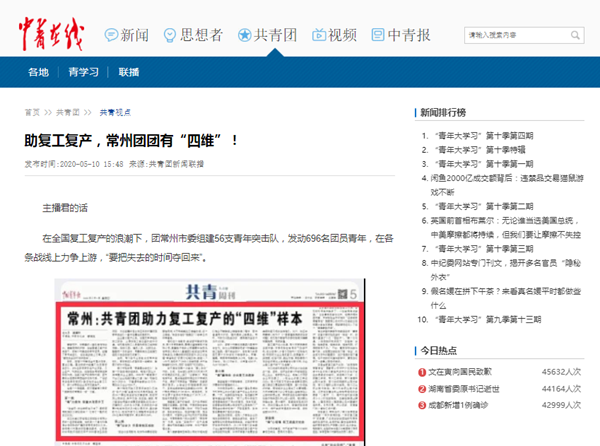 | 中青在线:助复工复产,常州团团有“四维”! |