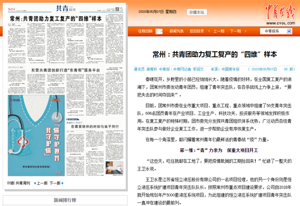 | 中国青年报:常州:共青团助力复工复产的“四维”样本 |